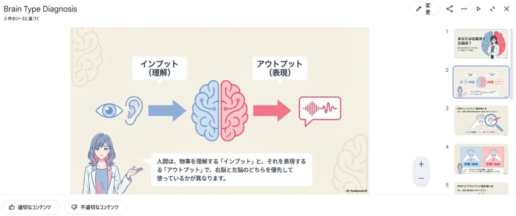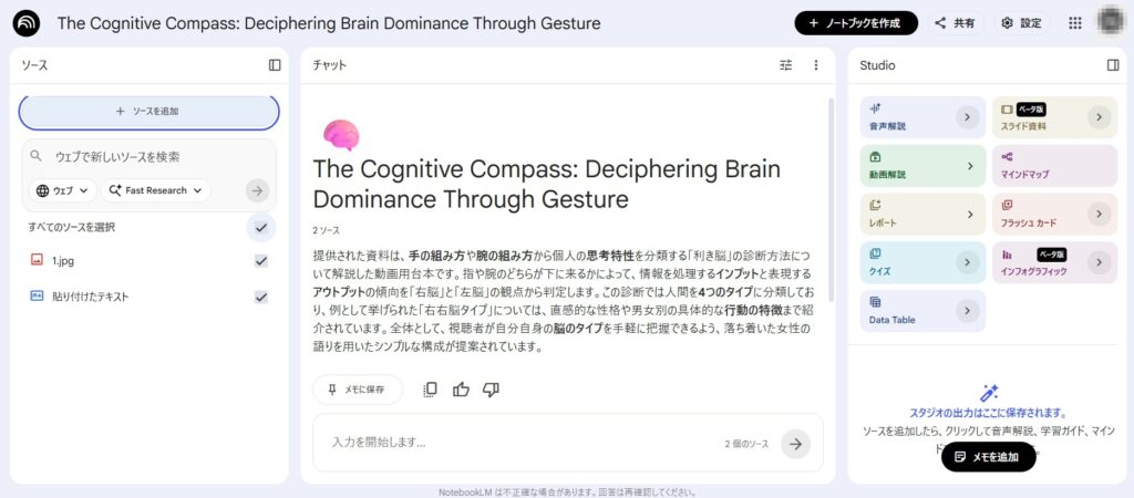 ここでは、記事を投げて動画やさまざまな資料を生成してもらった体験記の記事となります。Geminiも使用。